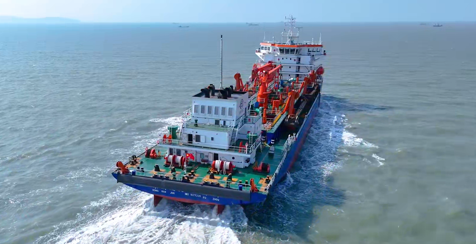 The 'DONGNANJUN18' trailing suction hopper dredger is equipped with two MAN 9L32/40 engines, each with a power of 4500KW and a rotation speed of 750 r/min, ensuring efficient operation under various conditions. It features a fully automatic centralized control system, advanced dredging monitoring software, and a mud hopper volume of 8650m³, achieving a dredging volume of 25000m³ per hour. The dredging depth reaches 31-35m, with a blowing distance of ≥3KM and comprehensive safety equipment including wave compensators and winches designed for stable performance.